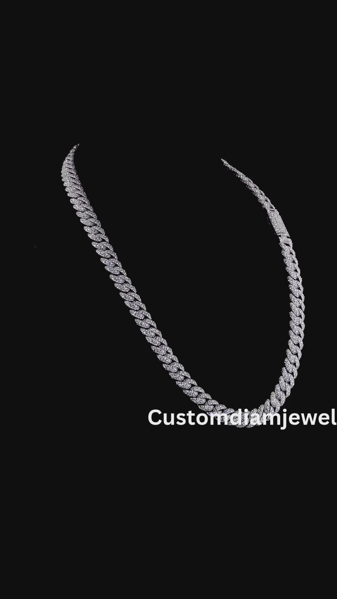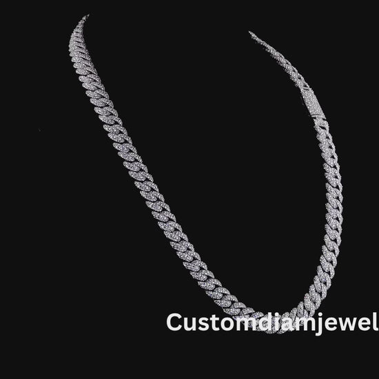 10mm Inverted Diamond Mosaic Setting Silver Moissanite Chain