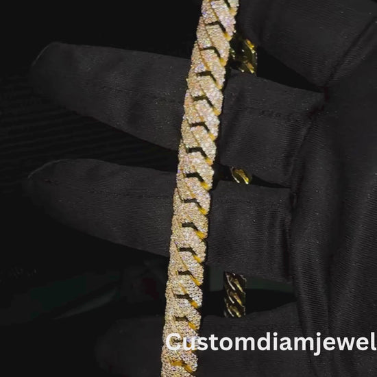 10mm Three Row Curve Sterling Silver Moissanite Chain