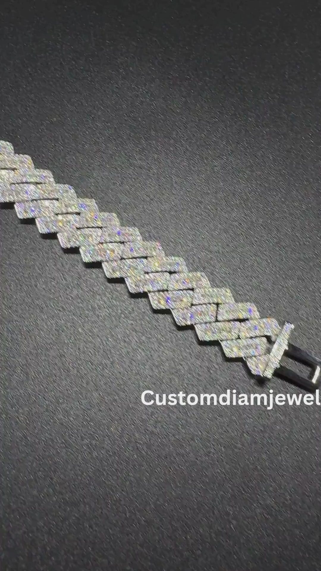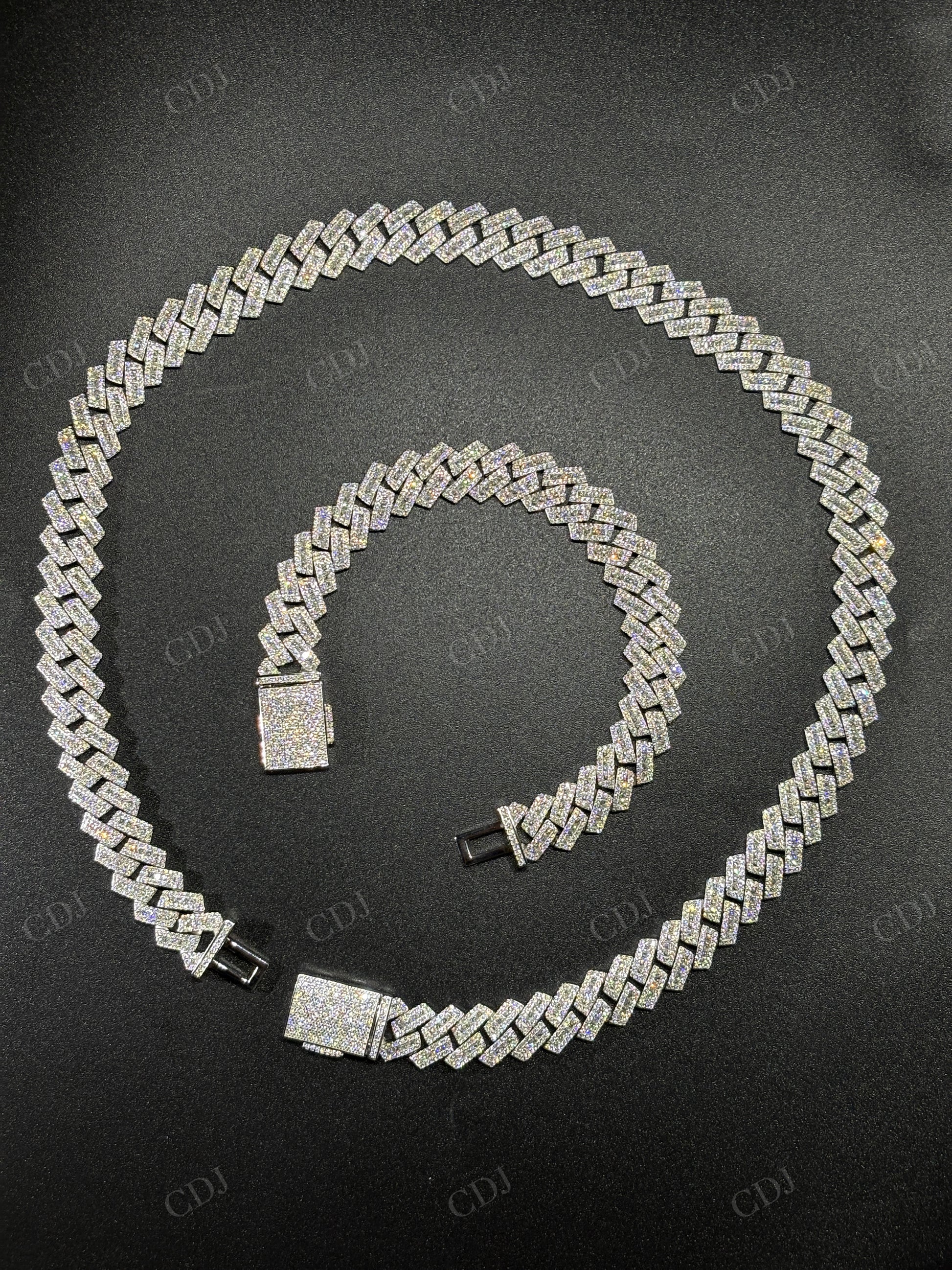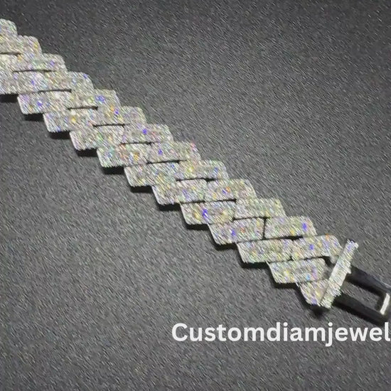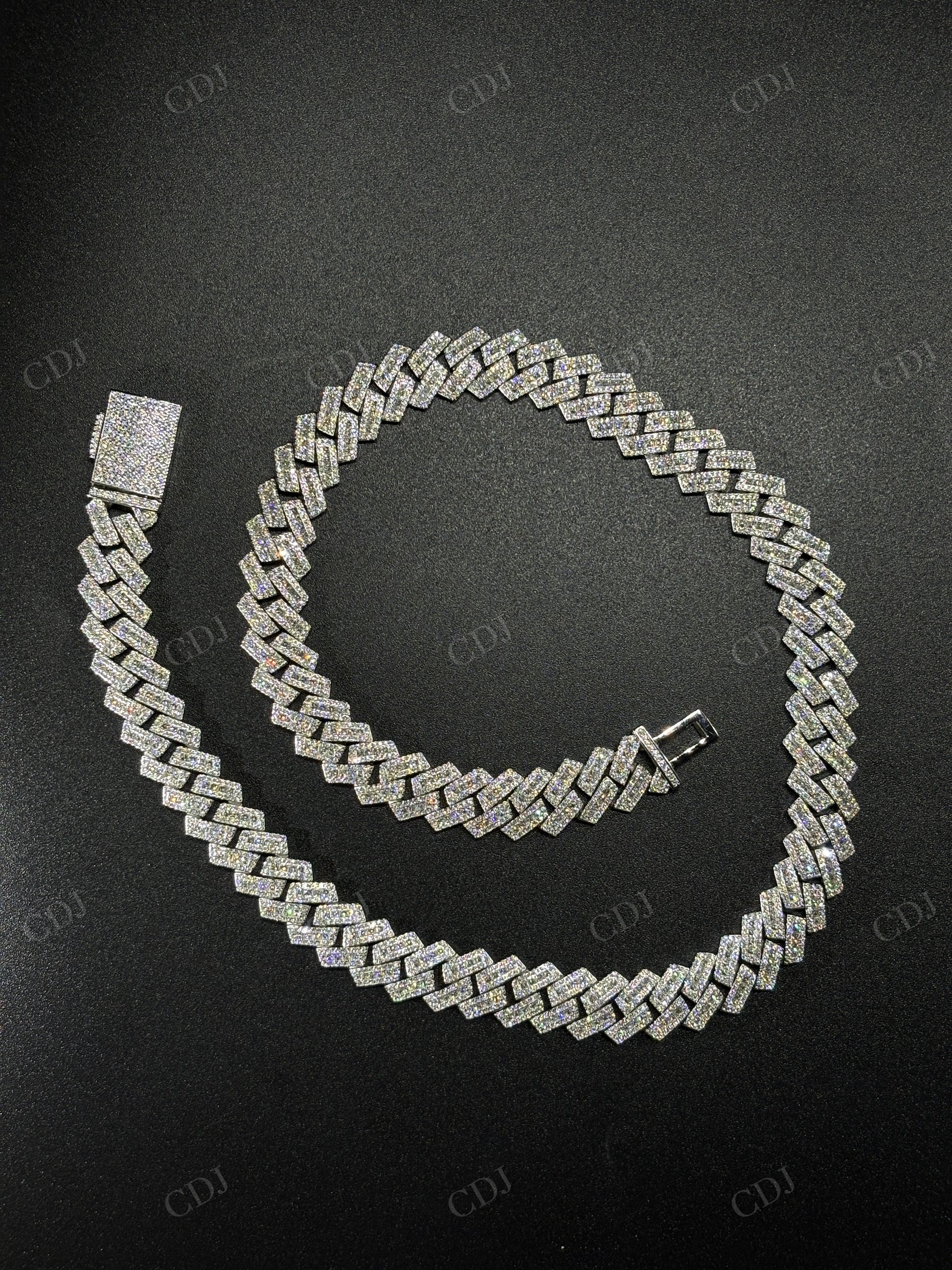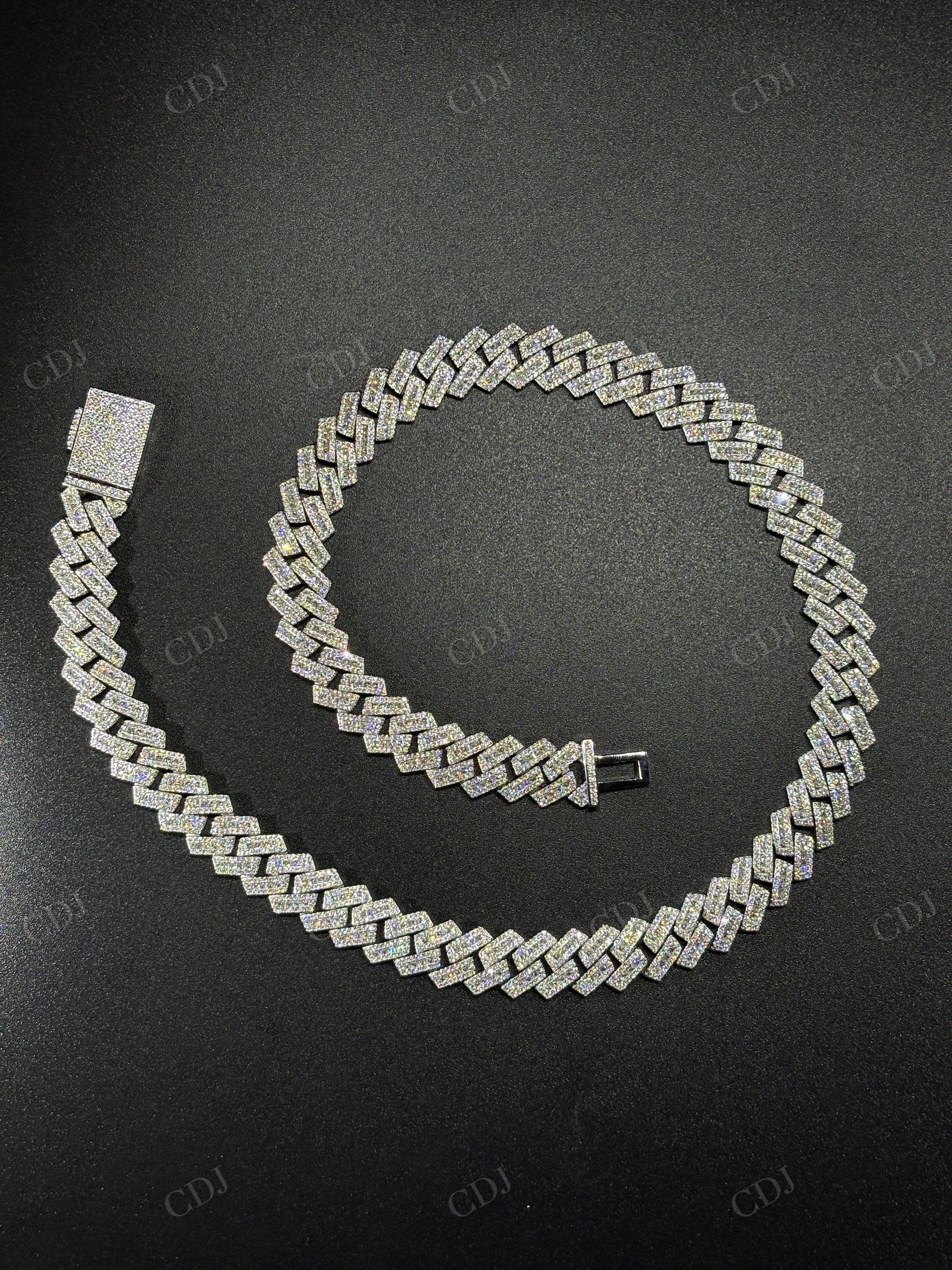 13mm SQ Middel Baguette 925 Sterling Silver Moissanite Chain